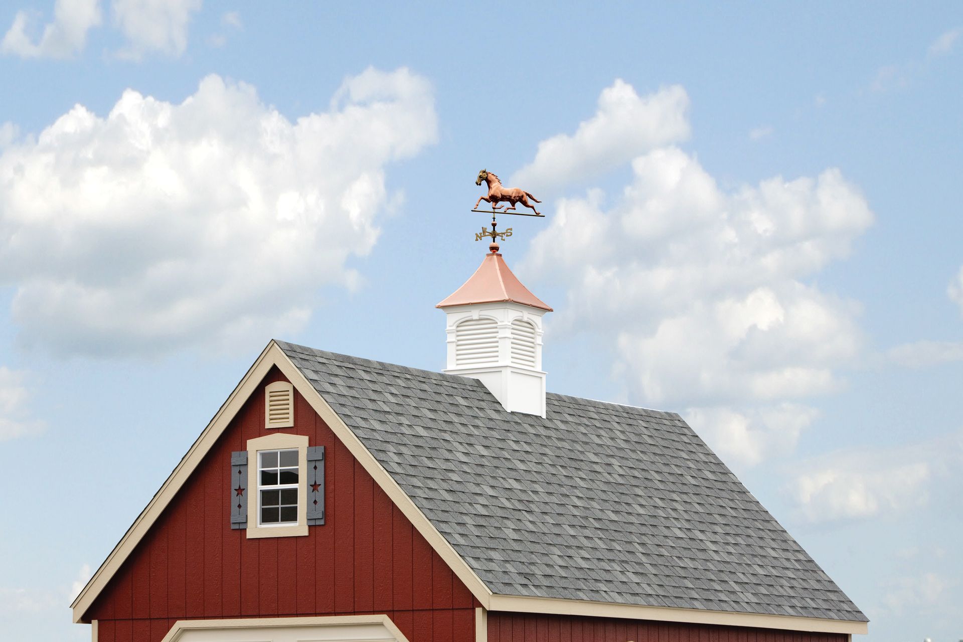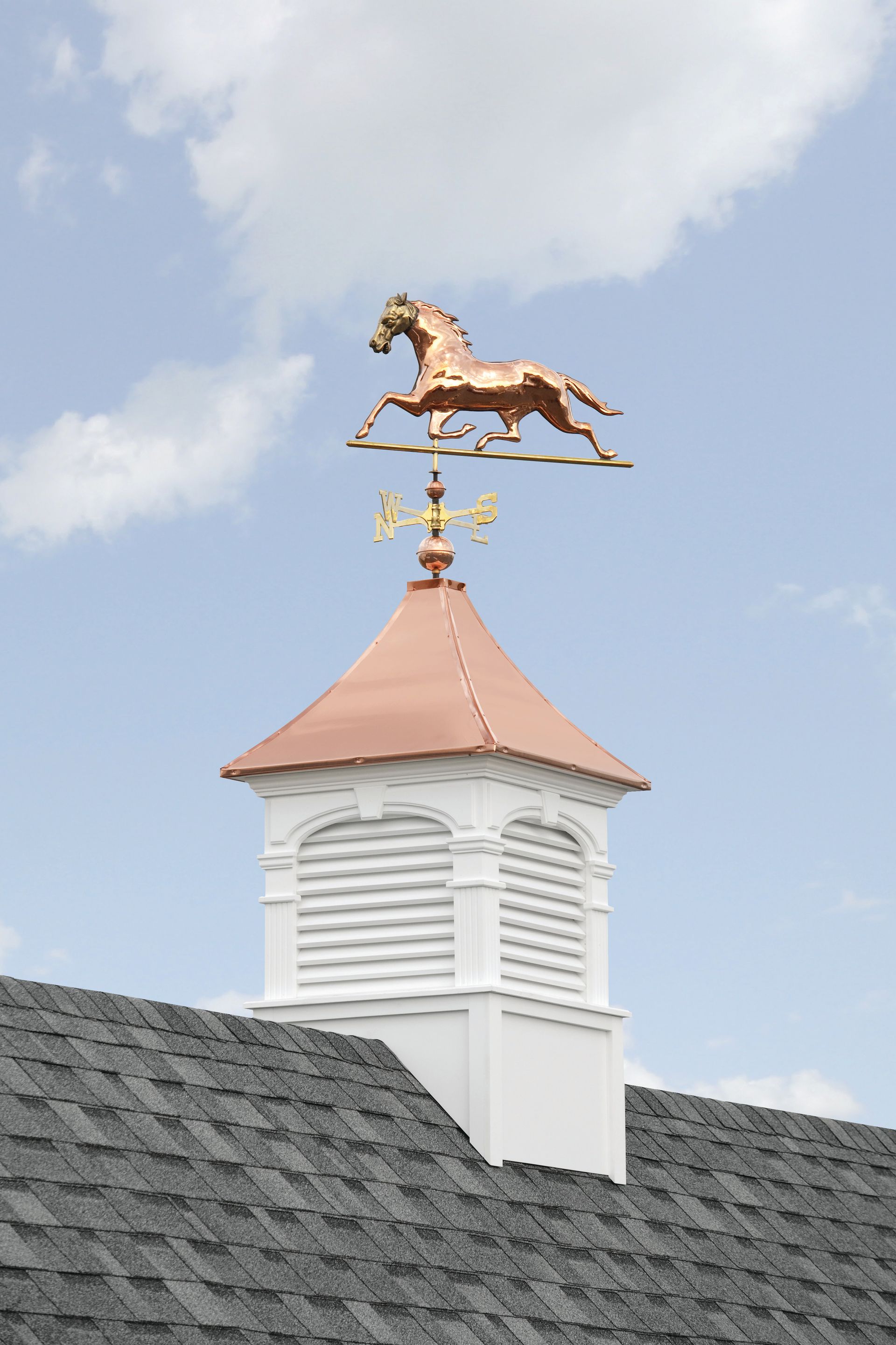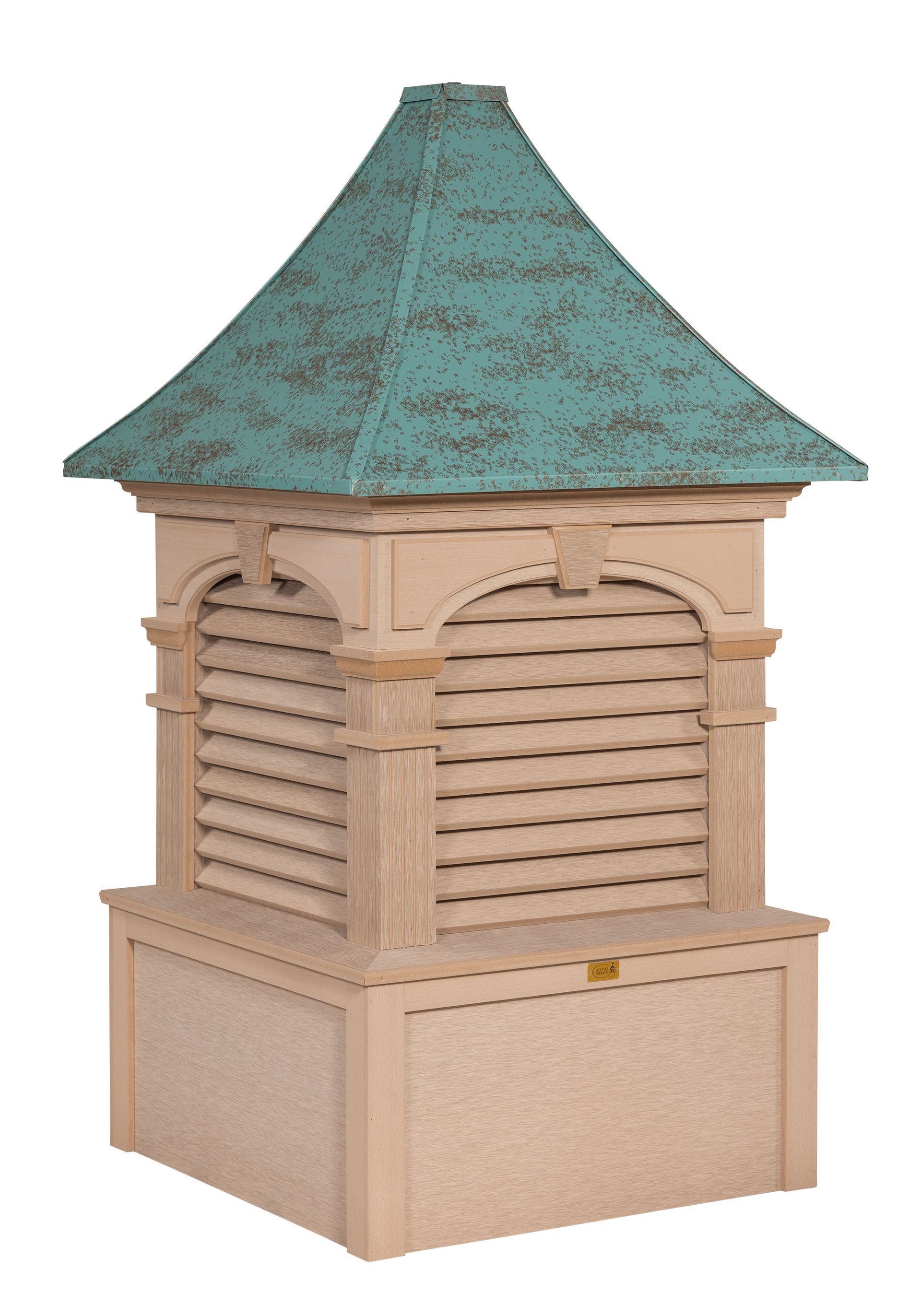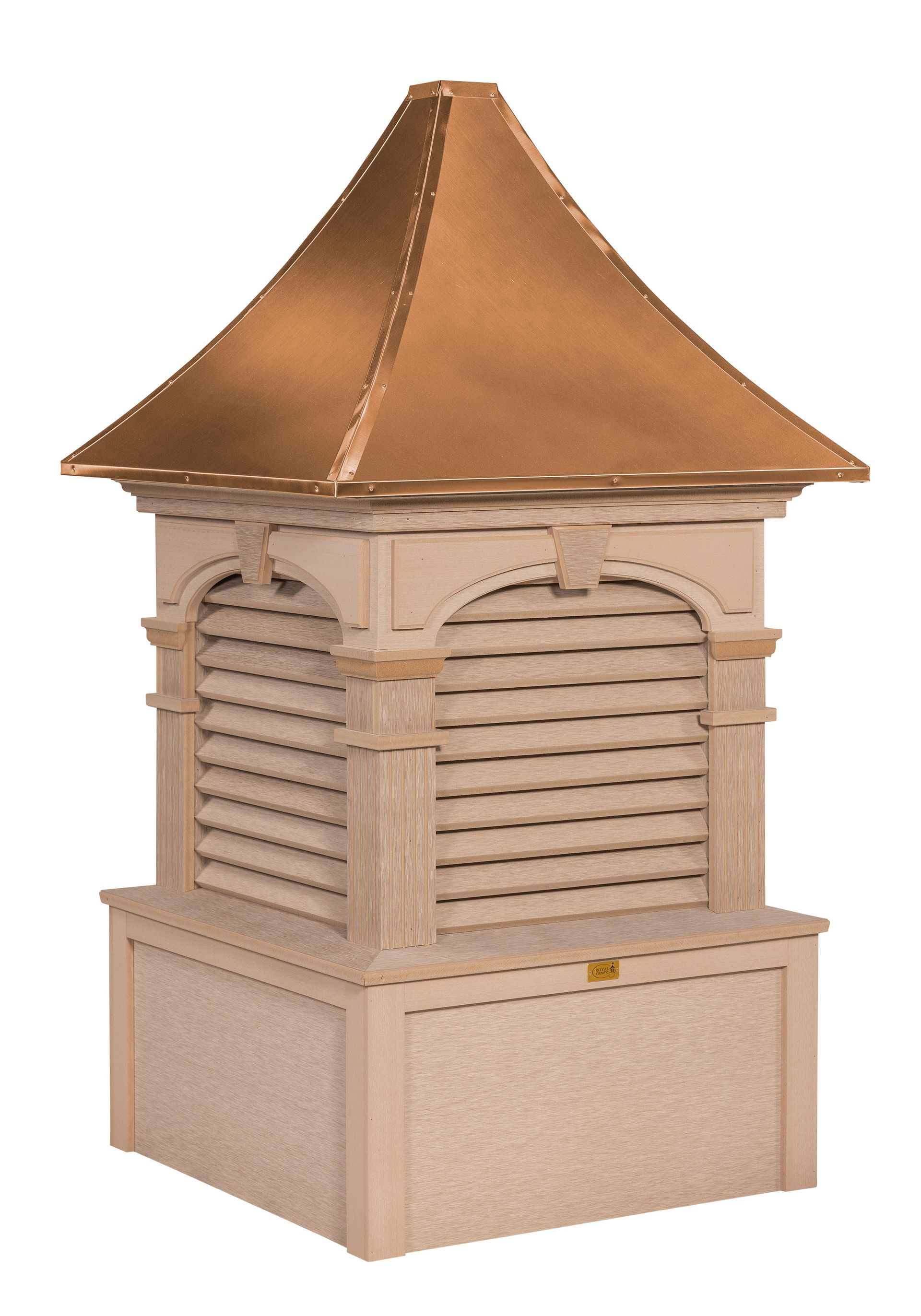 The Alexander cupola is highly detailed in construction & craftsmanship and is distinguished from any other cupola on the market today. The Alexander cupola is manufactured of a solid Vinyl-pvc trimboard or a Cedar-PVC trimboard & capped with a copper or metal roof. - Made from a rot free cellular-pvc trim & stainless steel fasteners that will stand the test of time. - Weathervane Mount standard. - Accomodate up to a 10/12 roof pitch. Base extensions are available for steeper pitch roofs. - Cupolas are engineered to withstand up to 120MPH winds. - Cupola size is determined from the width of the base. - Manufactured in USA by Royal Crowne.