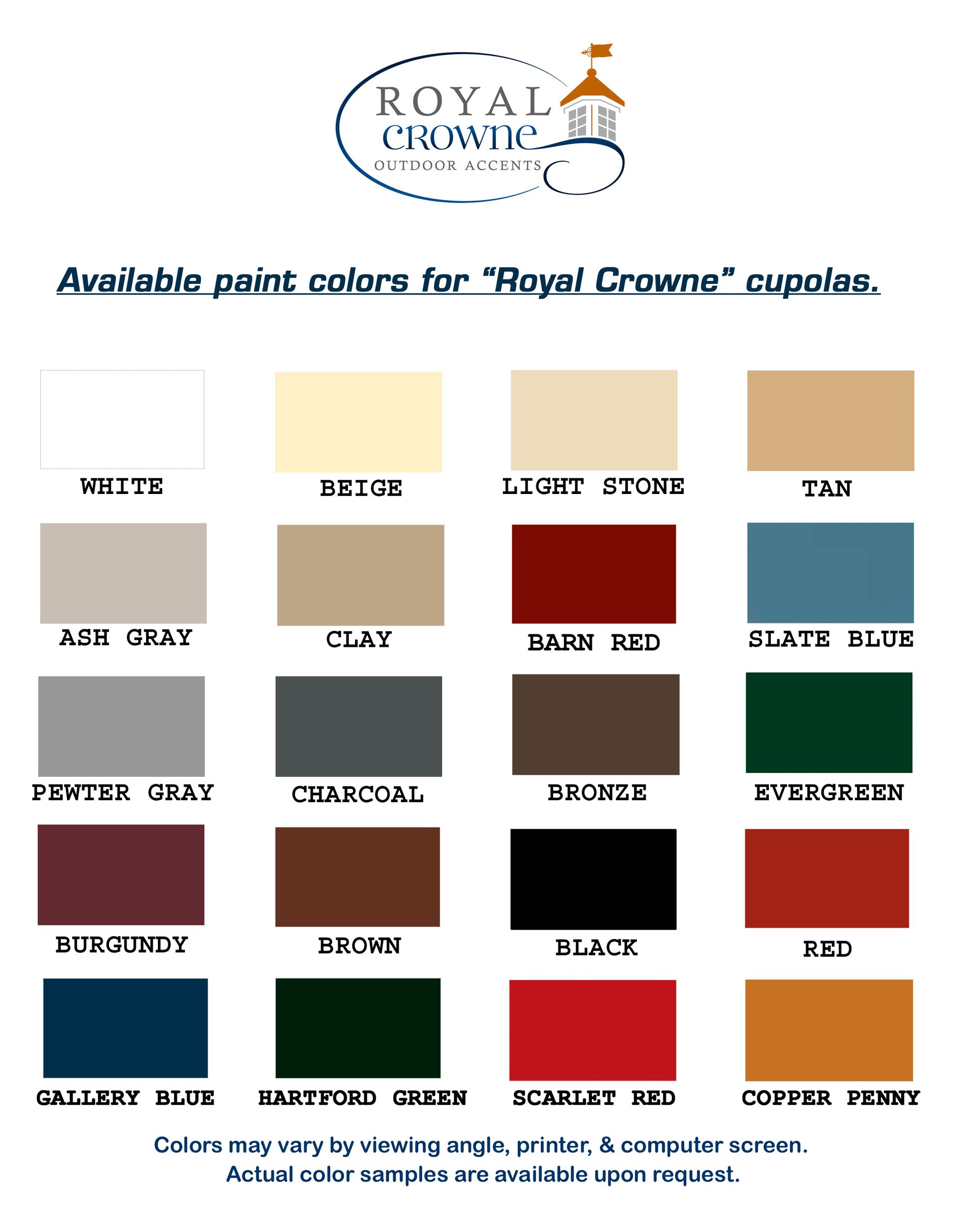 The Quincy cupola is highly detailed in construction & craftsmanship and is distinguished from any other cupola on the market today. The Quincy cupola is manufactured solely of a solid Vinyl-pvc trimboard & capped with a copper or metal roof.