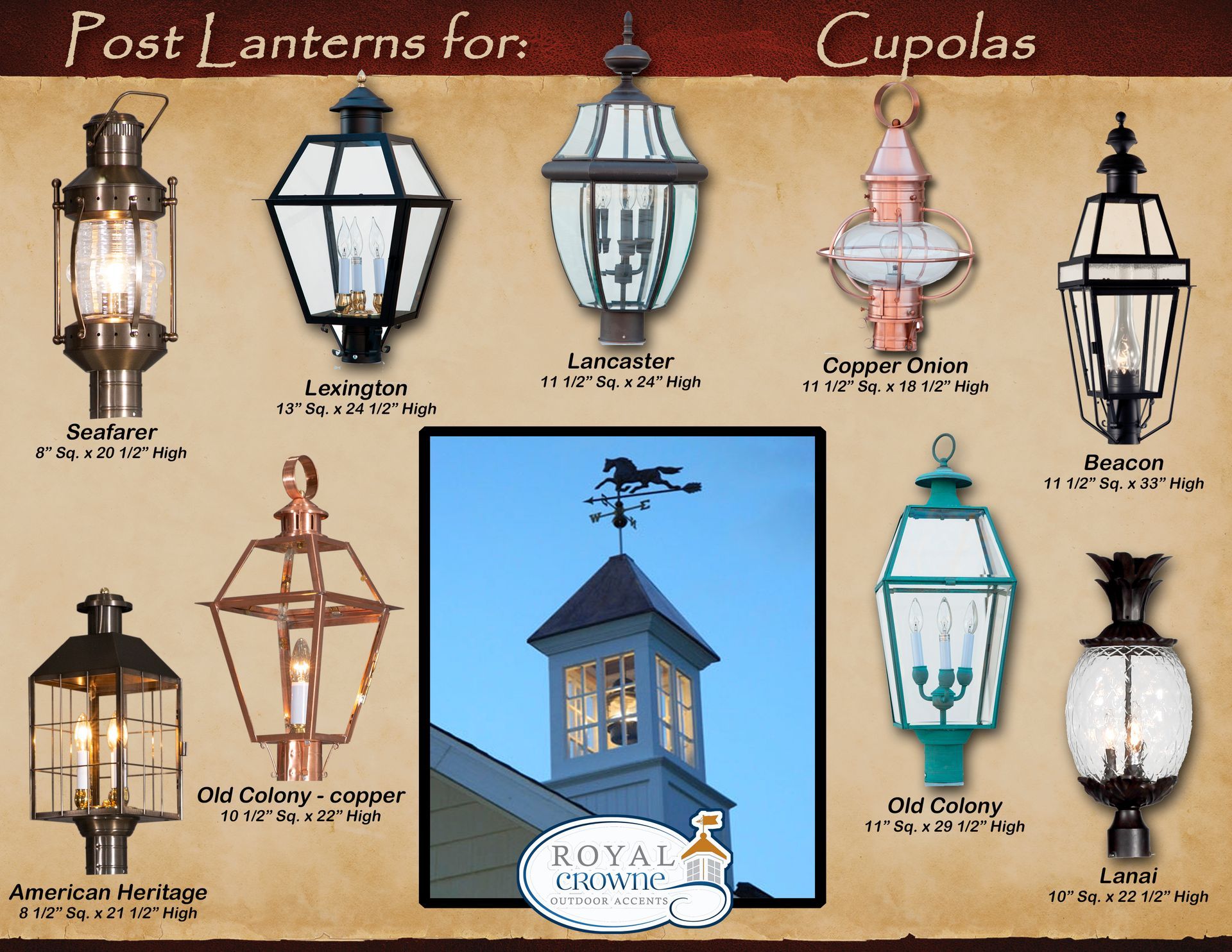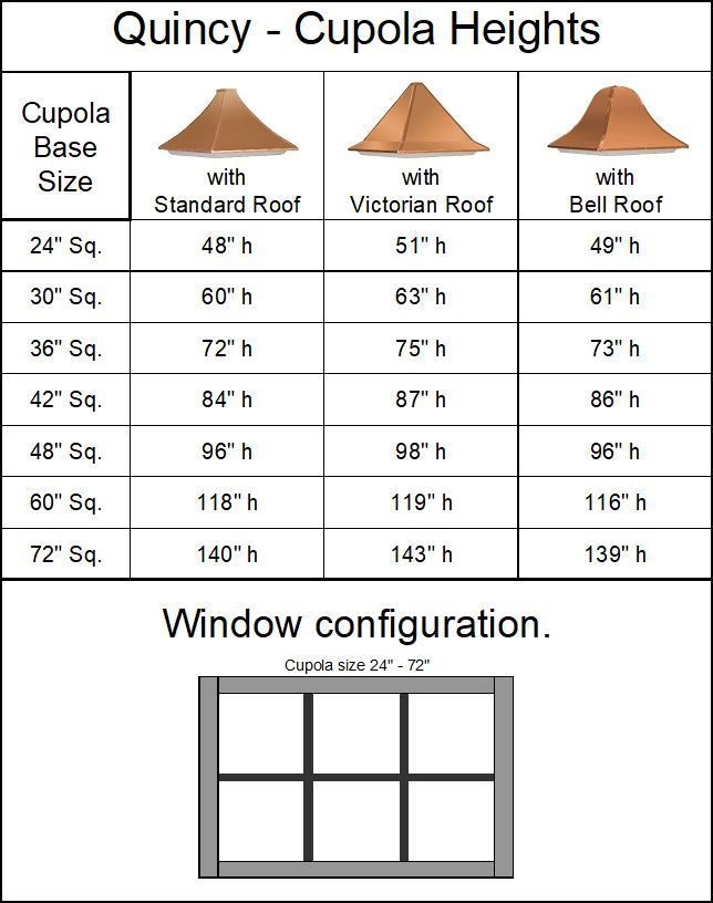 - Cupola size is determined from the width of the base.