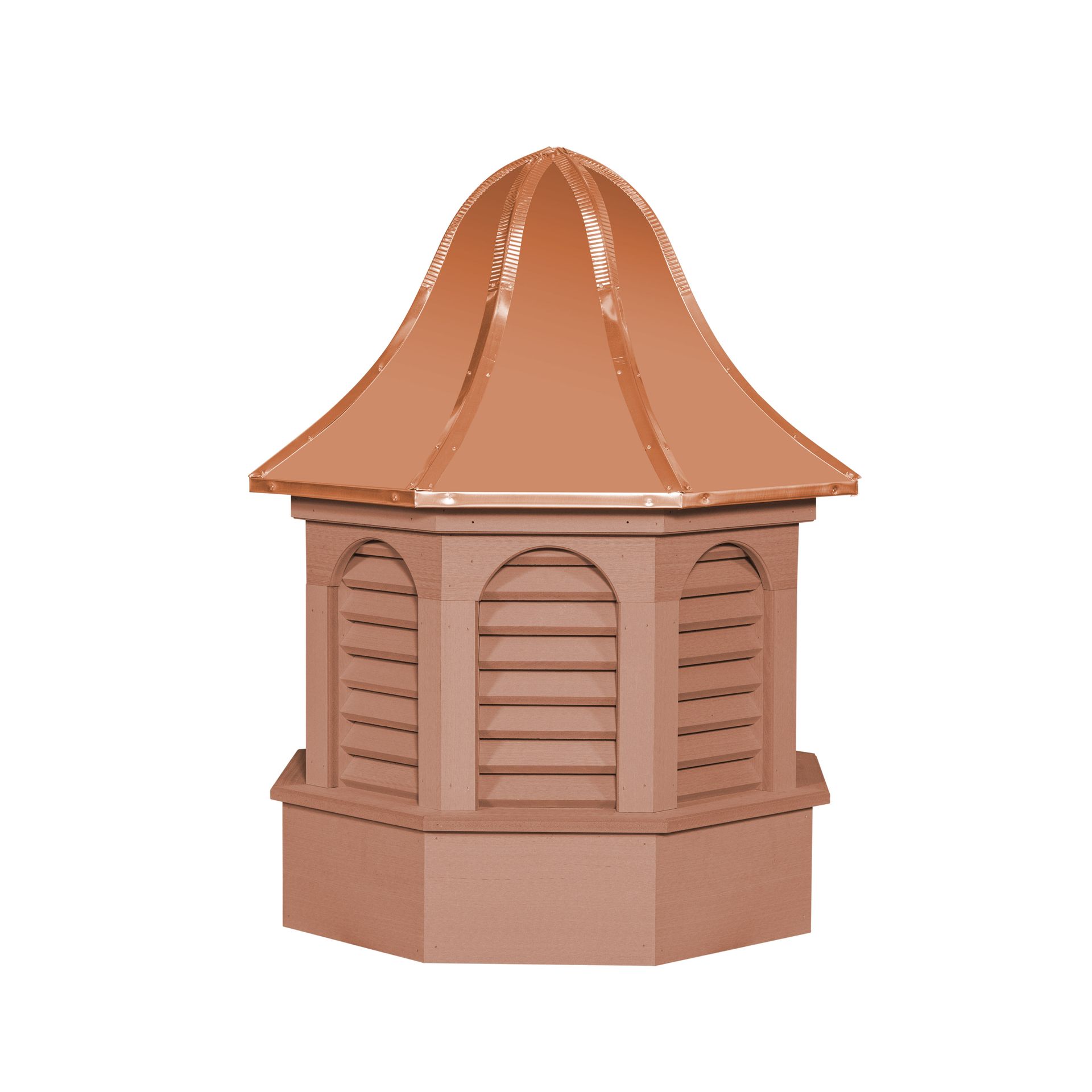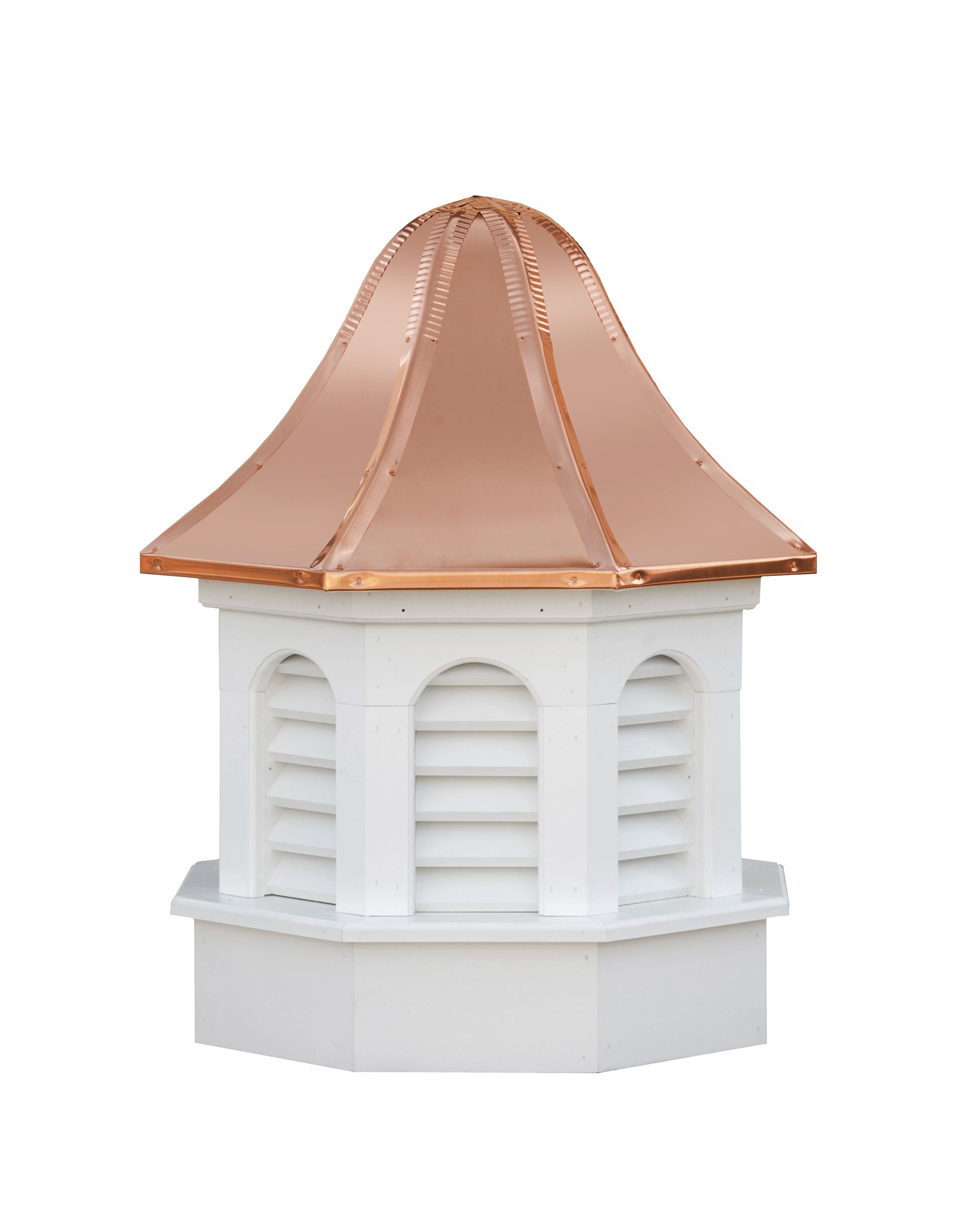 The Pinnacle-gazebo cupola of our Estate Gazebo Series will make a great addition to your gazebo or octagon structure. With arch louvers, The Pinnacle-gazebo cupola is a shorter version of the Estate Series & is manufactured of a solid Vinyl-PVC trimboard, or the NEW Cedar-PVC material & capped with a copper or metal roof. - Made from a rot free cellular-PVC trim, or Cedar-PVC trim & stainless steel fasteners that will stand the test of time. - Weathervane Mount standard. - Cupolas are engineered to withstand up to 120MPH winds. - Cupola size is determined from the width of the base. - Manufactured in USA by Royal Crowne.
