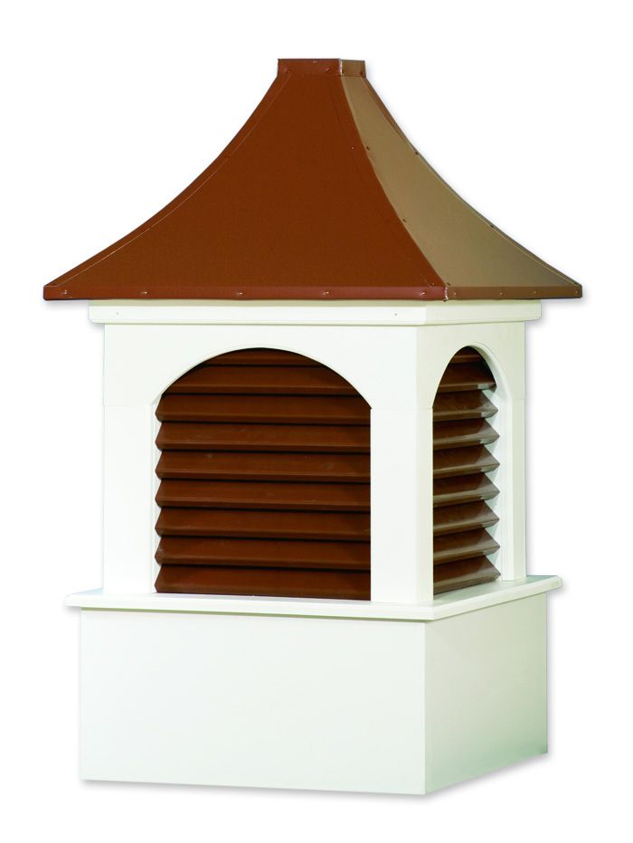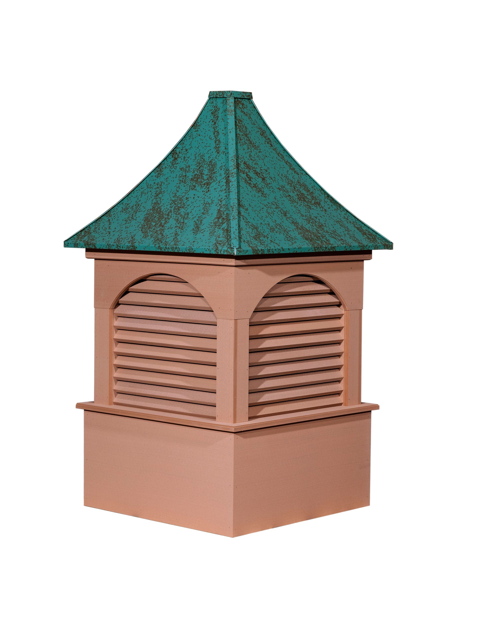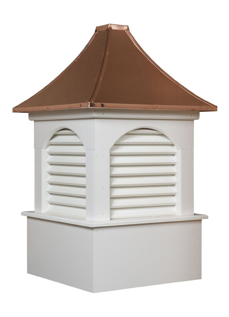 The Dalton cupola of our Estate Series will make a great addition to any structure on your property. With arch louvers, The Dalton cupola is manufactured of a solid Vinyl-pvc trimboard, or the "NEW" Cedar-pvc material & capped with a copper or metal roof.