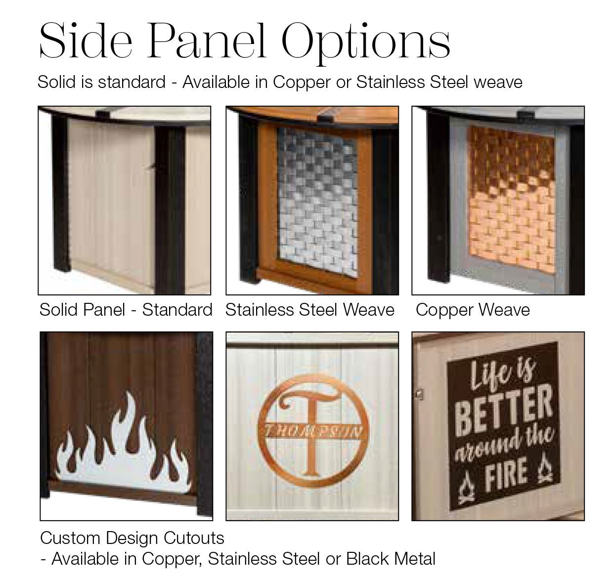 Optional side options & vinyl covers available