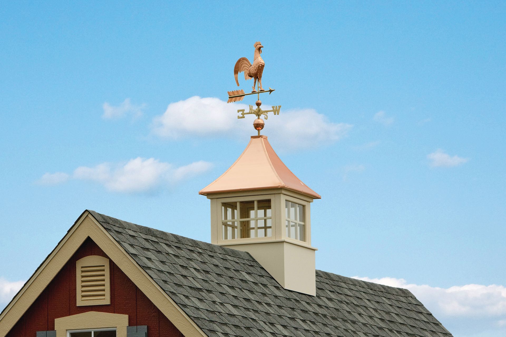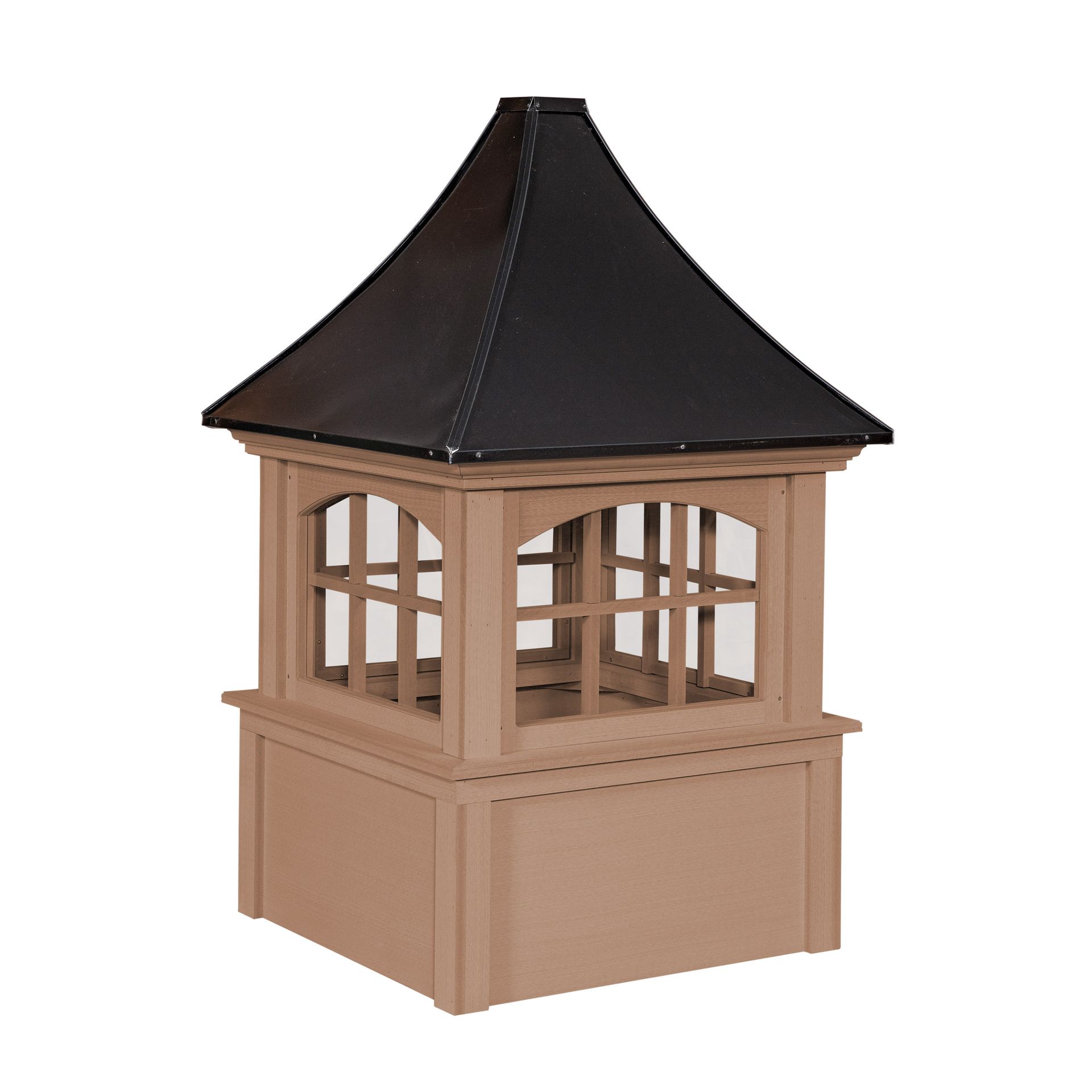 The Carlisle cupola of our Select Series is the perfect addition to your garage or other outbuilding. With traditional style windows, The Carlisle cupola is manufactured of a solid Vinyl-pvc trimboard, or the "NEW" Cedar-pvc material & capped with a copper or metal roof.