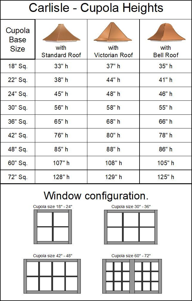 - Cupola size is determined from the width of the base.