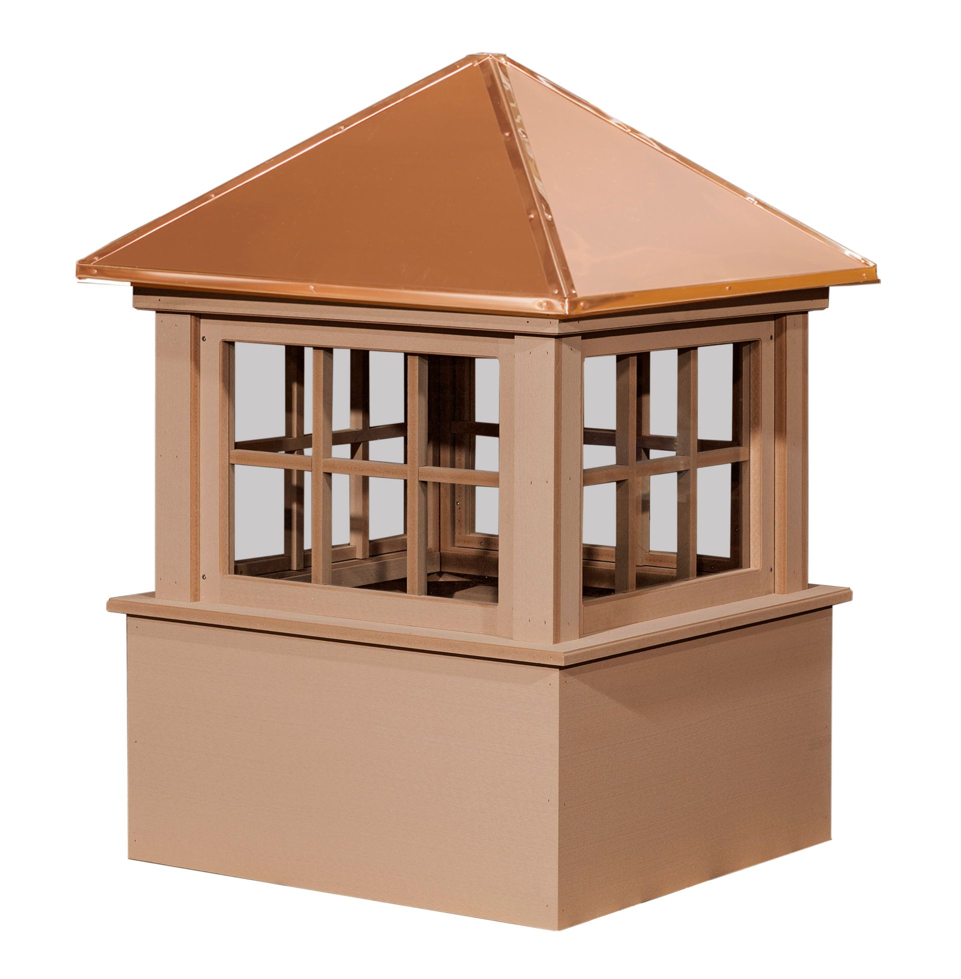 The Ellsworth cupola of our Select Series is the perfect addition to your garage or other outbuilding. With traditional style windows, The Ellsworth cupola is manufactured of a solid Vinyl-pvc trimboard, or the "NEW" Cedar-pvc material & capped with a copper or metal roof.