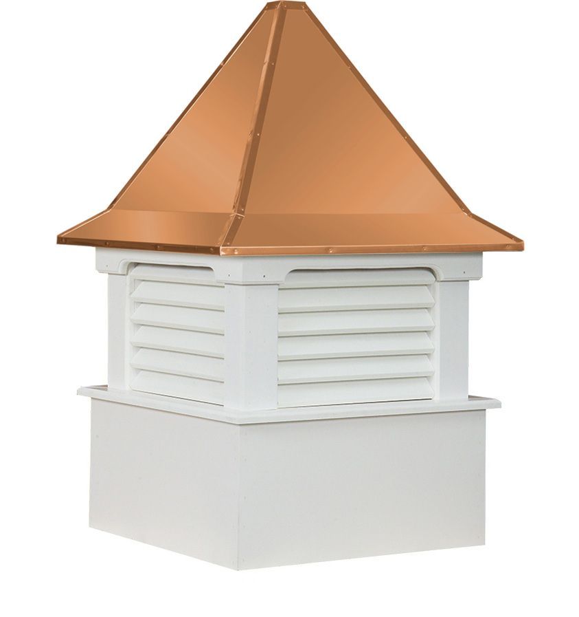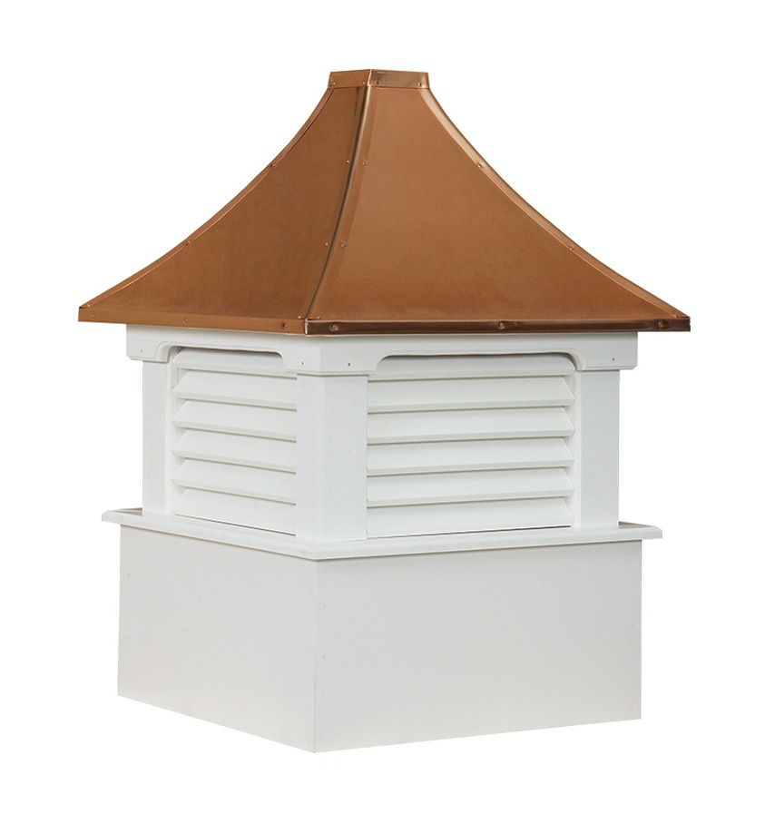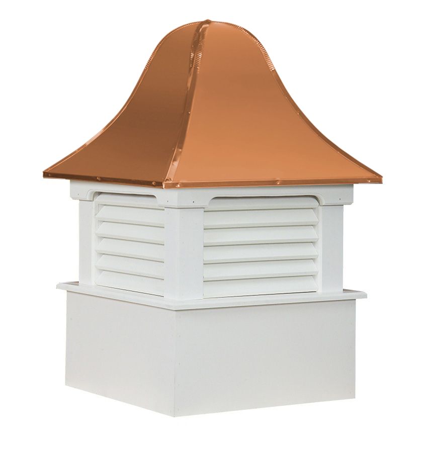 The Morton cupola of our Select Series is the perfect addition to your garage or other outbuilding. With traditional style louvers, The Morton cupola is manufactured of a solid Vinyl-pvc trimboard, or the "NEW" Cedar-pvc material & capped with a copper or metal roof.