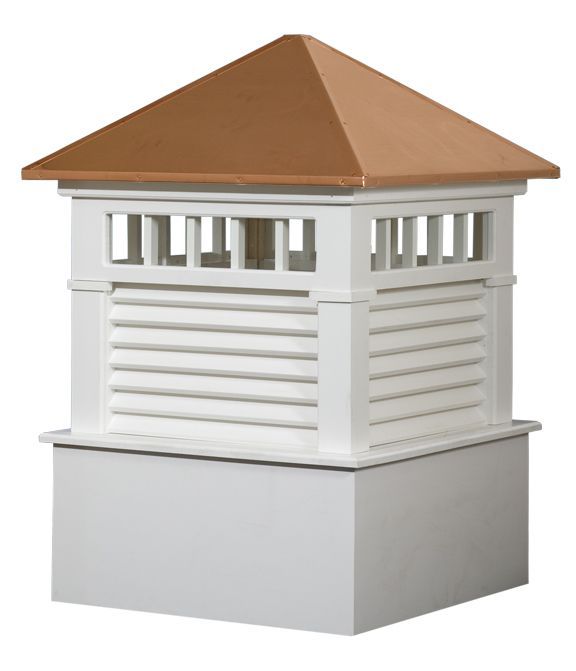 The Waterford cupola of our Select Series is the perfect addition to your garage or other outbuilding. With traditional style louvers & transom windows, The Waterford cupola is manufactured of a solid Vinyl-pvc trimboard, or the "NEW" Cedar-pvc material & capped with a copper or metal roof.