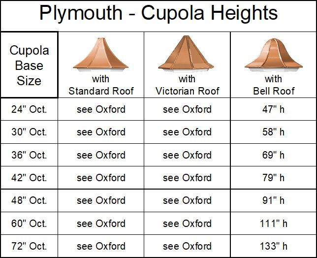 The Plymouth cupola is highly detailed in construction & craftsmanship and is distinguished from any other cupola on the market today. The Plymouth cupola is manufactured solely of a solid Vinyl-pvc trimboard & capped with a copper or metal roof.