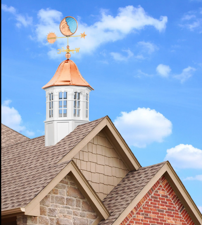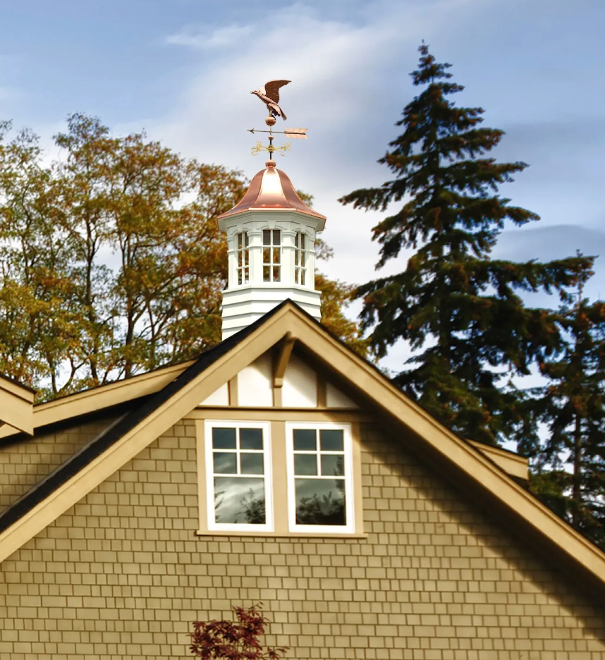 Complete your cupola with a finial or weathervane that matches its proportions and style. Our vinyl bases are made to pair beautifully with copper and metal accents, giving your roofline a cohesive, finished look that feels intentional and built to last.